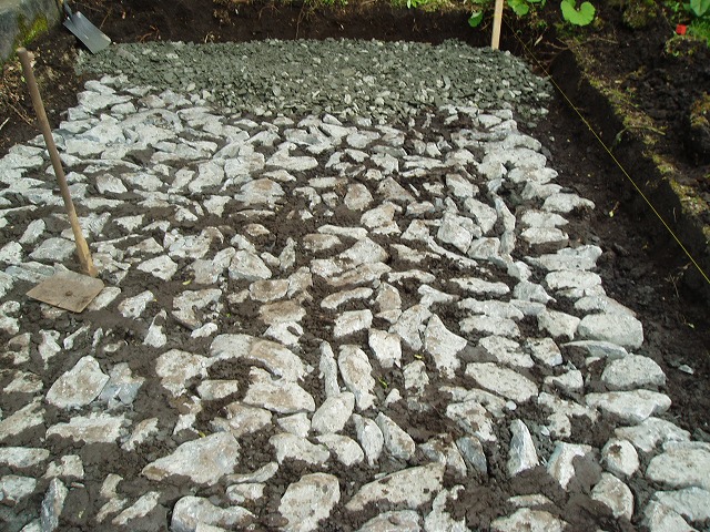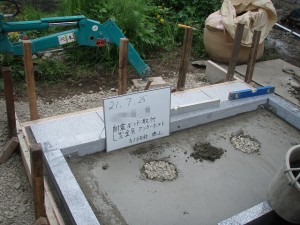 お墓基礎施工(地盤が軟弱の施工) 2018年5月14日2011年4月18日 栗石を均一に並べて整地します。 ランマという機械にて転圧します。 ランマでの転圧後、砕石(0mm~40mm)で整地します。 さらにランマ転圧。 石材などの重量物が乗る場合などは、ダブル鉄筋を使用します。