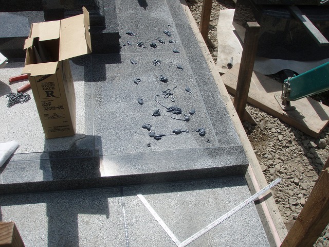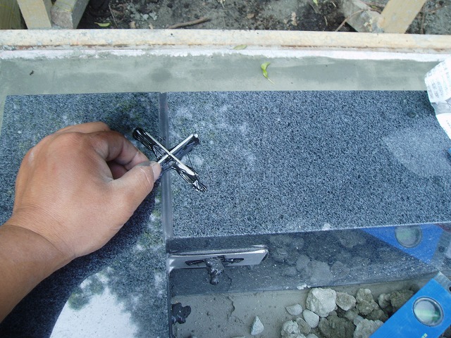 お墓施工 2018年4月27日2011年4月18日 強力な耐震ボンドにて接着 耐震ボンド取付 L型金具・アンカーボルト 耐震ボンド取付 L型金具・アンカーボルト 以下、各所に強力な耐震ボンドを利用 最後は石材用ワックスをかけて完成です。